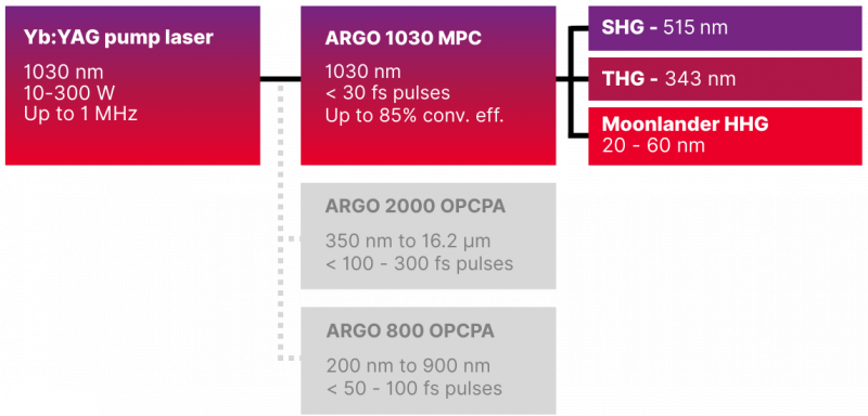The ARGO MPC line is specifically designed to operate with a wide range of Yb-lasers. Our systems can be integrated with existing Yb-lasers or, upon request, delivered as a complete system that includes a new pump laser.