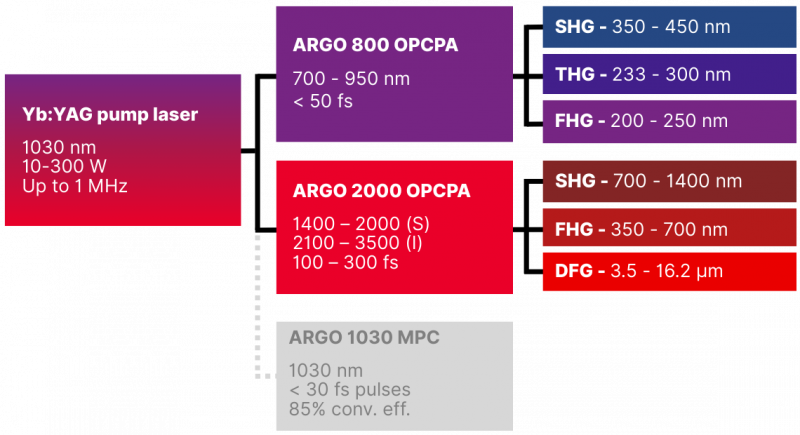 ARGO – Multi-color tunable OPA laser suite from UV to Mid-IR